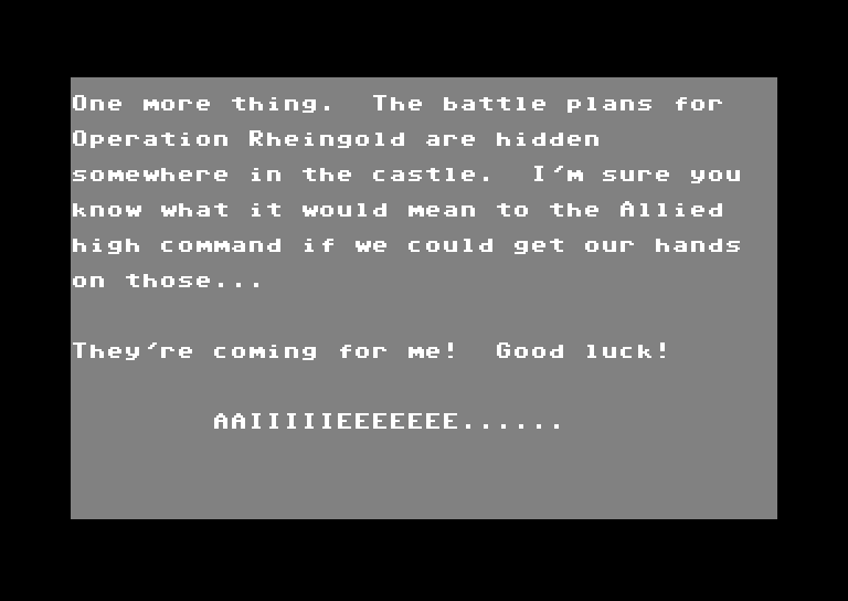 Welcome to CASTLE WOLFENSTEIN Mate, the internet brought you here to get instructions out of me…